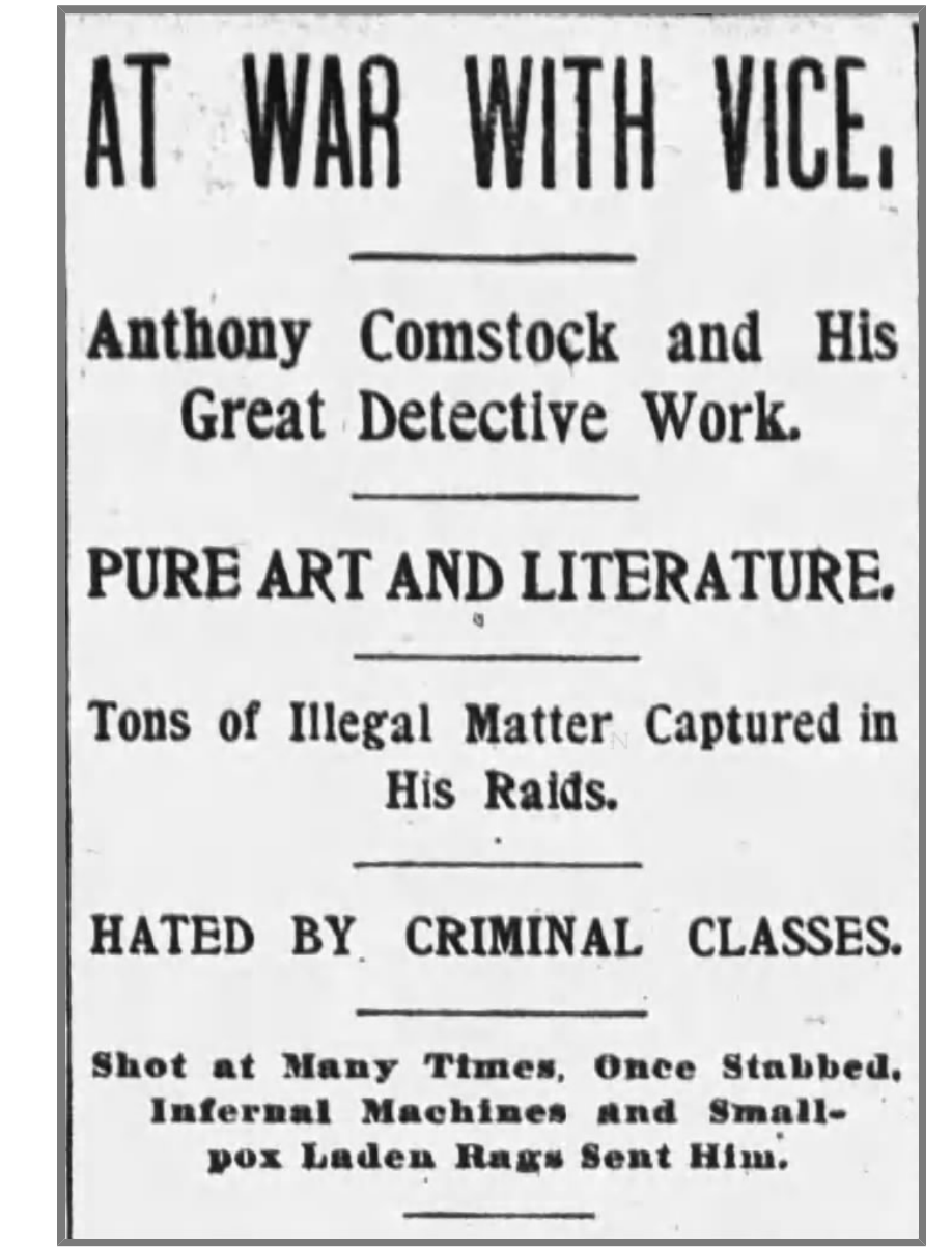 Anthony Comstock, New York Society for the Suppression of Vice, 1899. New York Public Library Digital Collections.